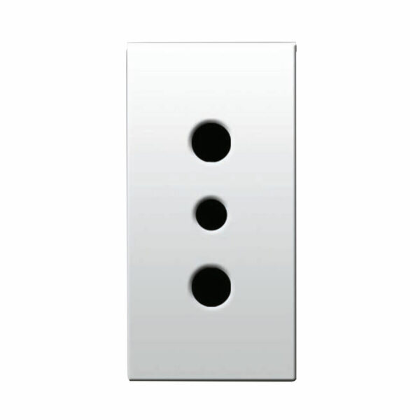 Presa P11 2P+T 10A, Serie Domus colore RAL9010, – alveoli schermati – possibilità di utilizzo del ponticello isolato cod. 442PONTE per il cablaggio rapido di più prese affiancate – 1 modulo