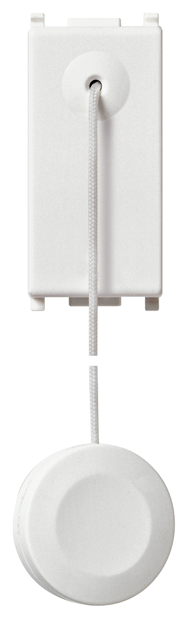 Pulsante a tirante Vimar Plana Bianco. Viene installato solitamente nei bagni , il pulsante funziona se viene tirata la cordicina. Da collegare ad un ronzatore o suoneria.